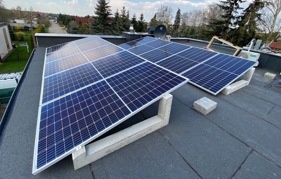 Estetická podpěrná betonová konstrukce pro montáž solárních panelů na rovné střechy, s minimem spojovacího materiálu a držáků panelů.