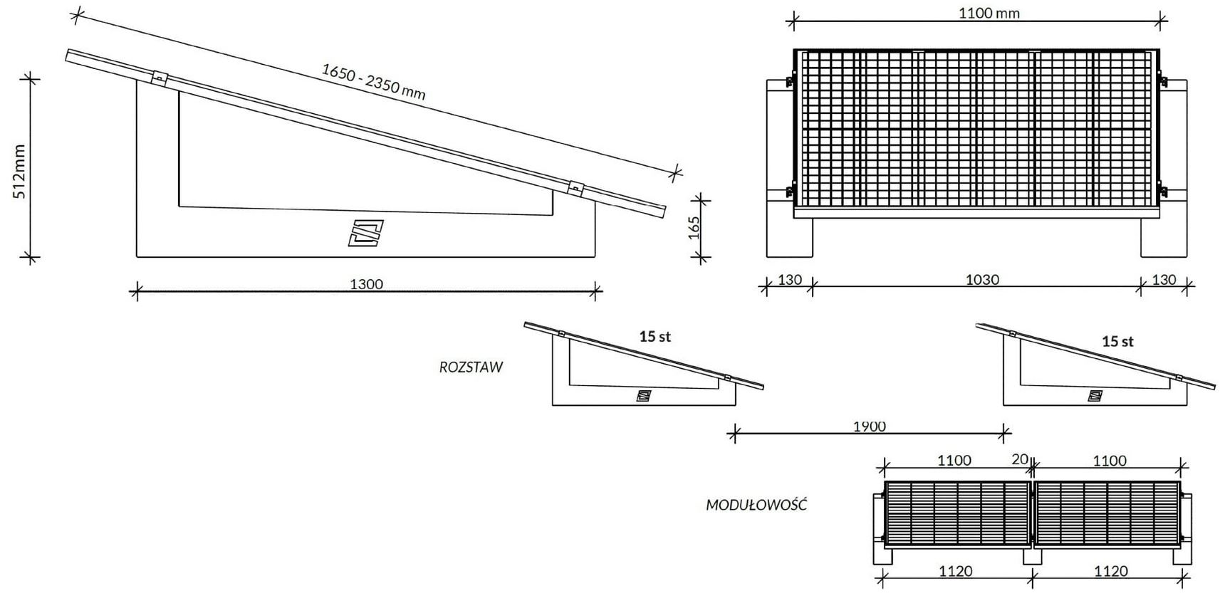 Panely je možné umístit jedním směrem, nebo konstrukci využít na instalaci systému východ / západ.