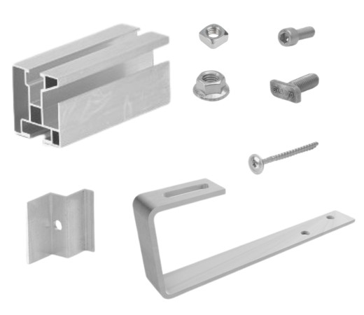 Sada na upevnění fotovoltaického panelu na střechu: šindel, eternit, plech. Sada je kompletní, připravena pro montáž 1 až 10 ks (zvolte dále) fotovoltaických panelů o max. šířce panelu 108 cm. Pro různé rámy. Upevňovací sady jsou skladem...