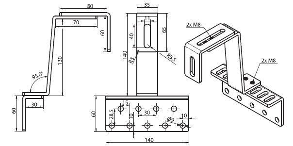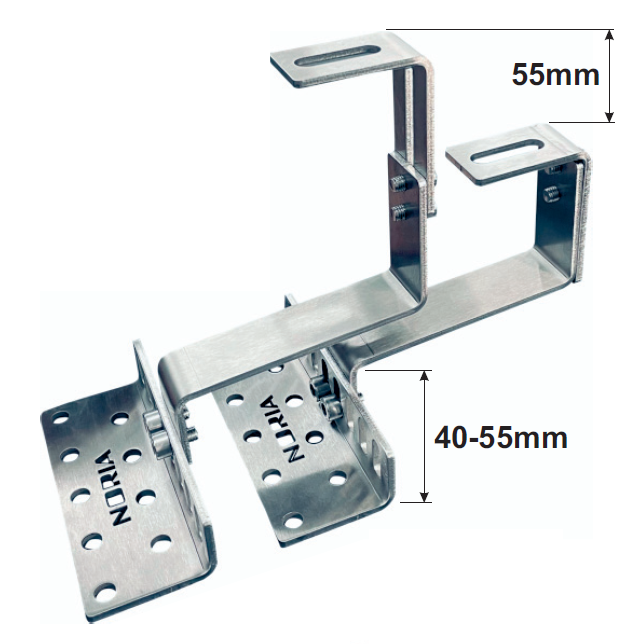 Hák Solar Vario N: dvakrát nastavitelný kombinovaný střešní nerez hák s širokým využitím. Je určen pro upevnění solárních panelů na všechny typy střešních tašek. Materiál: nerezová ocel.